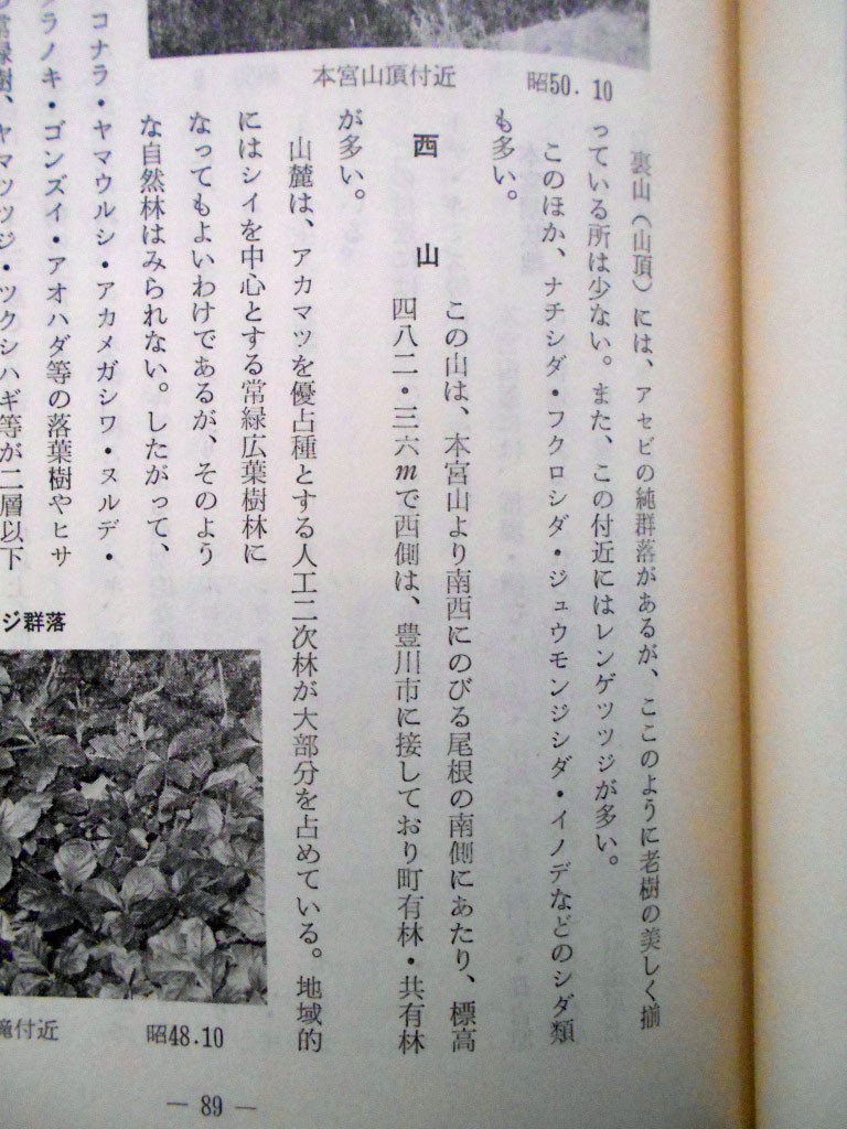 西山を最初に紹介したのは、1989年発行の「こんなに楽しい愛知の100山」でした。その当時の担当者に聞いたところ、もうすでに調査対象の山に「西蔵」という名前があがっていて、たまたま自分が担当し、そのまま「西蔵」として紹介したとのこと。